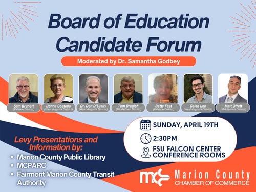 Hear from the candidates running to represent you on the Marion County Board of Education. We will also have presentations from the three levies on the ballot this May.